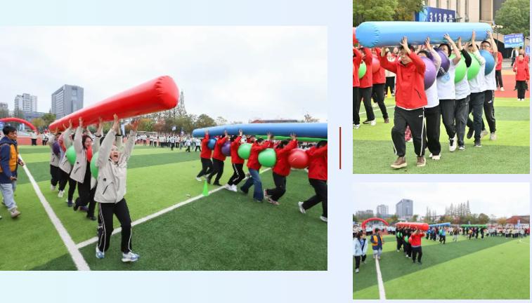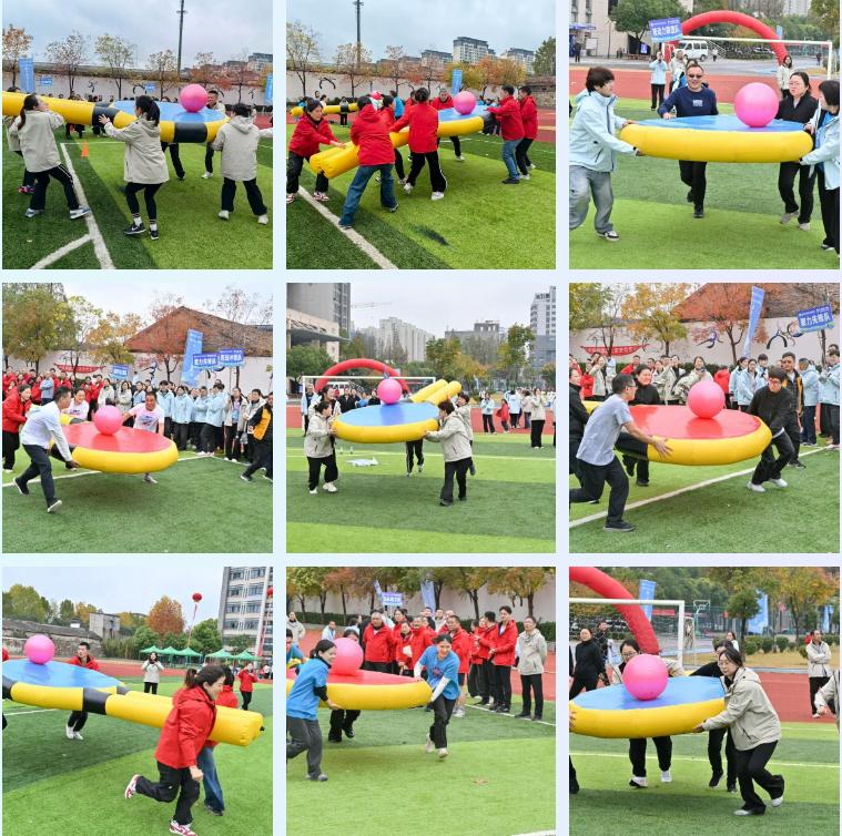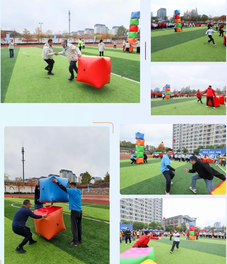 为增强团队协作,比赛特意设置了“砥砺前行”“步步高升”“薪火相传” “趣味九宫格足球”“十拿九稳” “拔河比赛”等团体趣味项目。