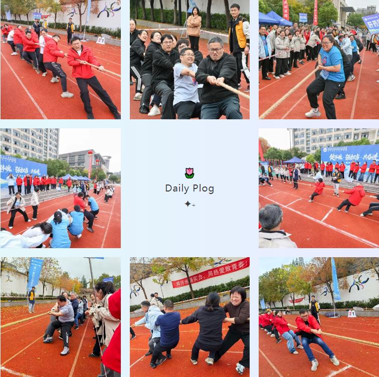 拔河比赛作为压轴项目,更是将运动会推向了高潮。队员们紧握长绳,脚蹬地面,身体后倾,使出浑身解数奋力拉扯,啦啦队员们在一旁高声呐喊、加油助威,呐喊声、口号声、欢呼声震耳欲聋,充分展现了团队间强大的团队凝聚力和向心力。
