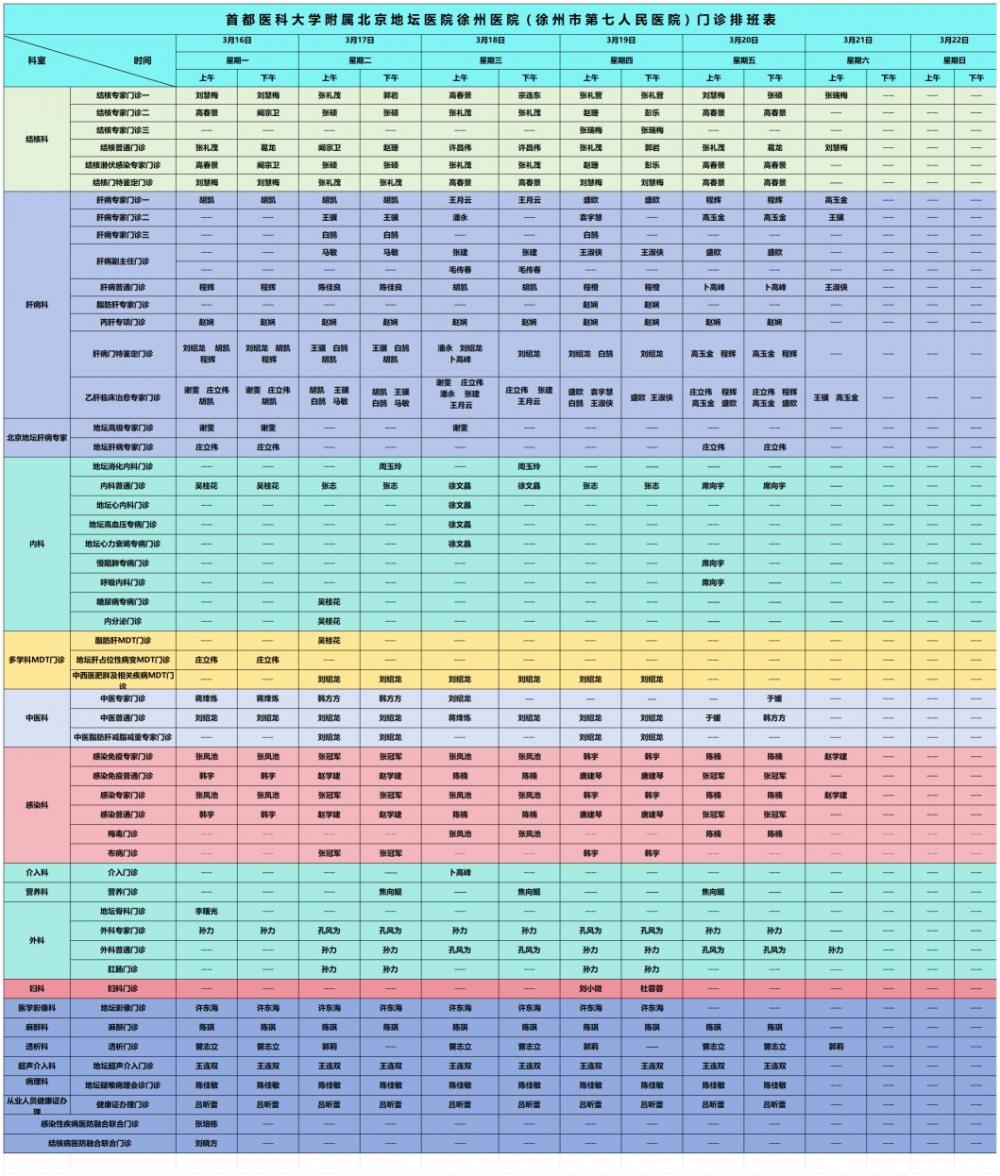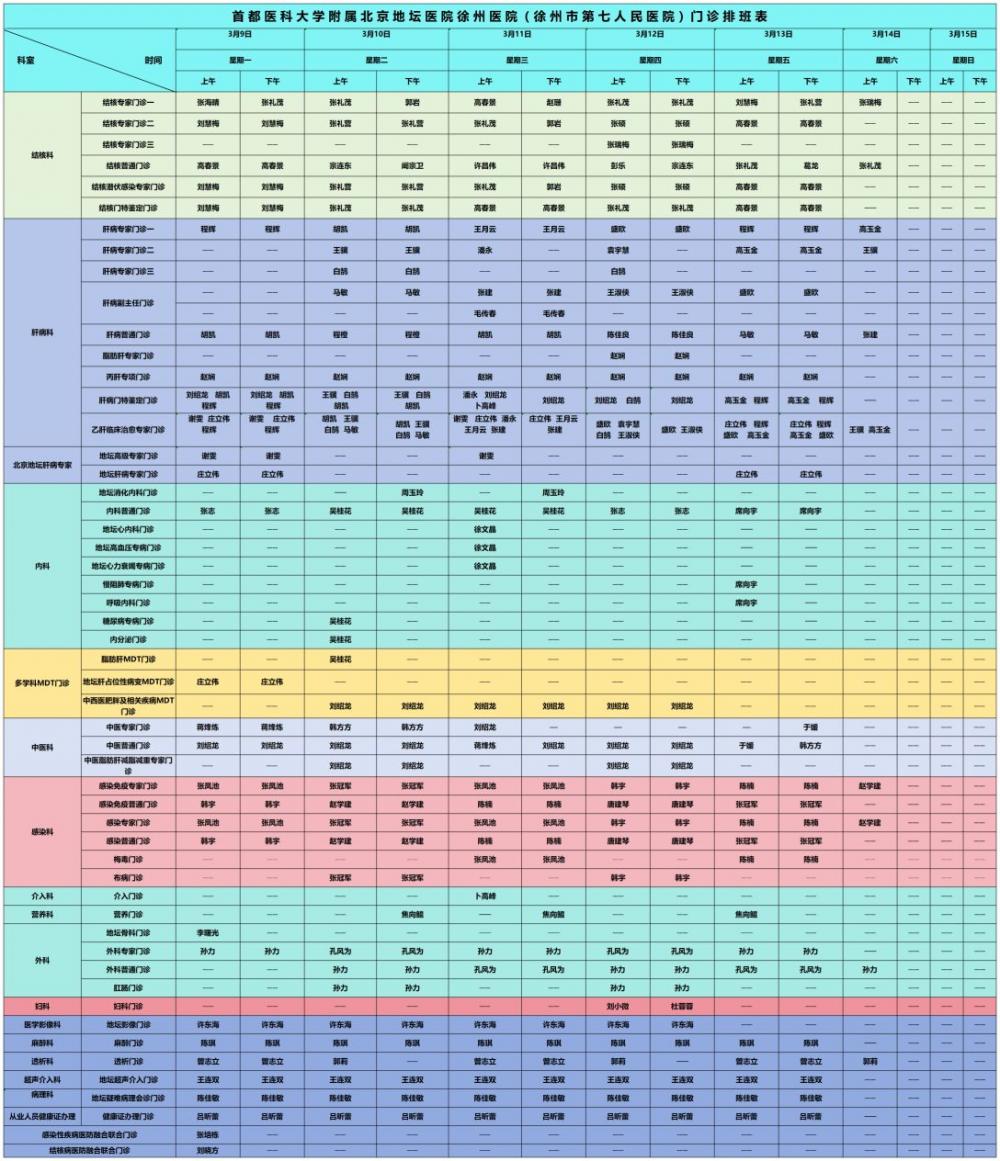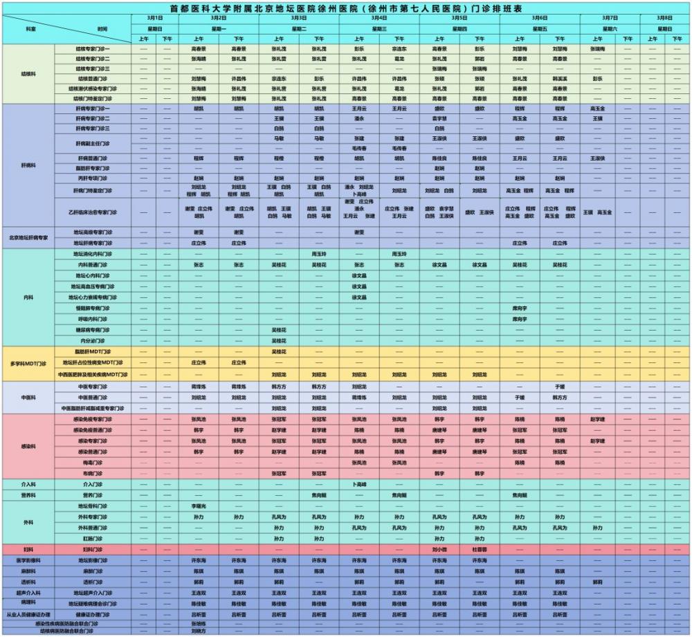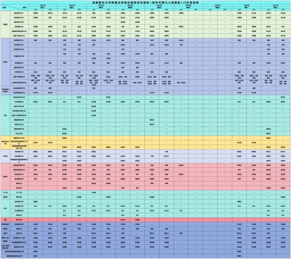 徐州市第七人民医院2026年门诊坐诊信息一览表(3月1日-3月31日)