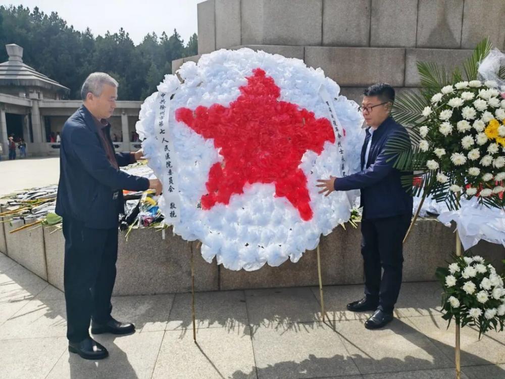 巍峨的淮海烈士纪念碑矗立在苍松翠柏间,镌刻的英烈名录熠熠生辉,承载着淮海战役中革命先烈们浴血奋战的峥嵘岁月。参与活动的党员干部职工身着正装,整齐列队、肃立致敬,低头默哀,以此缅怀为民族独立、人民解放献出宝贵生命的革命先烈,寄托对英烈的深切思念。