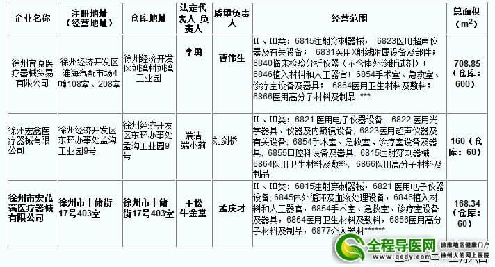徐州市医疗器械经营企业情况公示(第1069号)