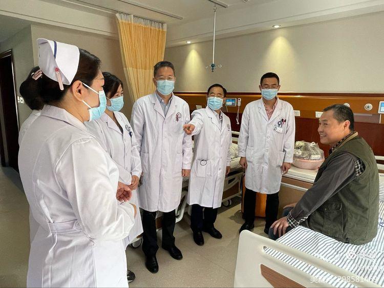 曹同斌院长及其他院领导查看患者病情情况,询问患者意见建议,与患者亲切交流。