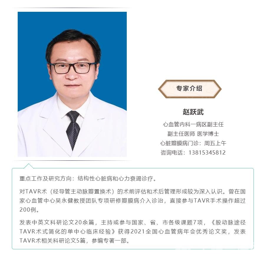 心脏瓣膜病团队对患者病情充分评估后,决定为患者施行经导管主动脉瓣置换术(TAVR)。经过周密术前讨论和计划,由心内一科副主任赵跃武主术完成。