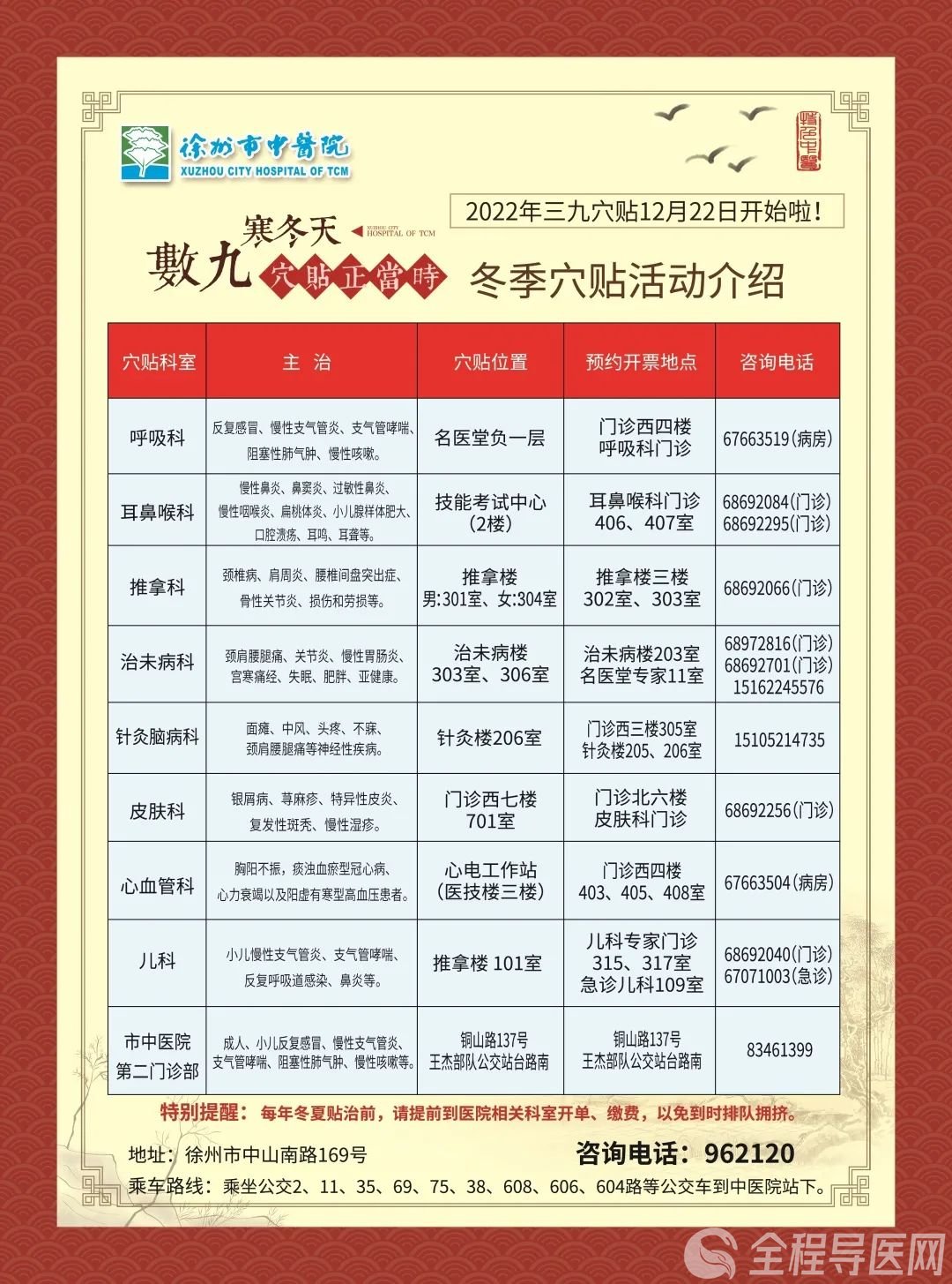 全程导医网 徐州中医频道:数九寒冬天,穴贴正当时!徐州市中医院2022年冬季穴贴,12月22日开始了。