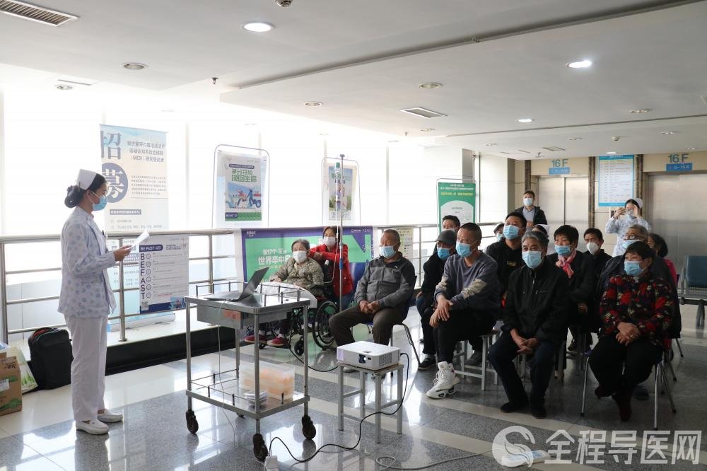 “脑卒中”通常在神经内科和急诊科治疗,在神经内住院的患者有大部分是患了脑卒中的,针对这一人群及其陪护家属,徐矿总医院神经内科在病房举办了“认识卒中、恢复健康”宣教活动。专家讲解了如何预防卒中复发、服用药物的注意事项等;护士讲解了日常生活护理、帮助恢复的健身操等方面的内容。