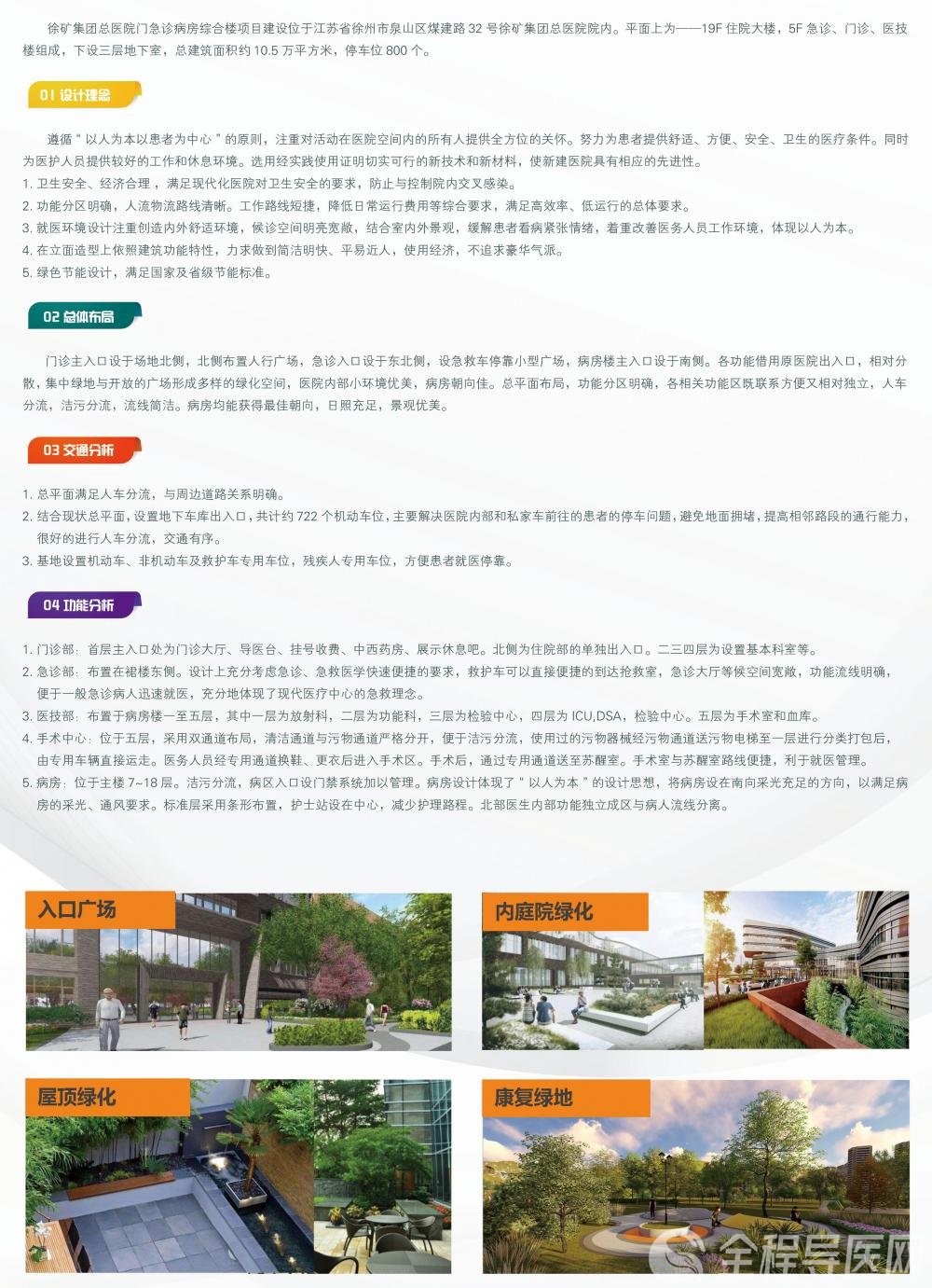 新大楼是徐州市重点工程、徐州“十四五”卫生健康发展规划的重点基建项目,建筑面积10.5万平方米,底下3层,地上19层,除门急诊医技外,另设置床位900张。大楼按照现代化医院设计,立足患者医疗健康需求,立足医院高质量发展整体要求,集门急诊、医技、病房为一体,配备杂交手术室、楼宇自动系统、轨道物流等国内外先进智能化的设施设备,使大楼布局流程更优化,功能定位更明晰,营建具有徐州地标意义的城市医疗综合体,以满足徐州市及淮海经济区周边百姓日益增长的医疗健康需求。借力门急诊病房综合大楼建设,医院将进一步加强自身能力建设,提升医疗技术和服务品质,推进“三名”建设,加快实现医院高质量、内涵式发展,努力打造现代化医院“矿总样板”。