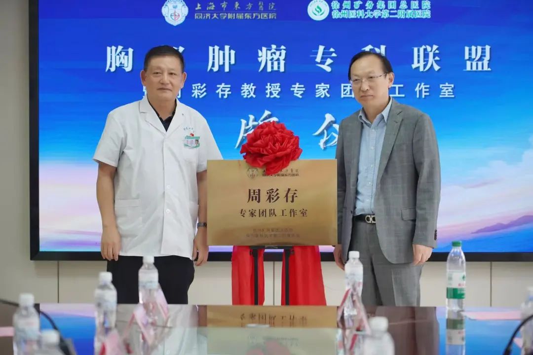 全程导医网 矿总频道:8月21日,徐矿总医院举办上海市东方医院胸部肿瘤专科联盟暨周彩存教授专家团队工作室揭牌仪式。上海市东方医院副院长徐美东、肿瘤科主任周彩存、徐矿总医院院长荣良群、党委书记王云清出席本次会议。