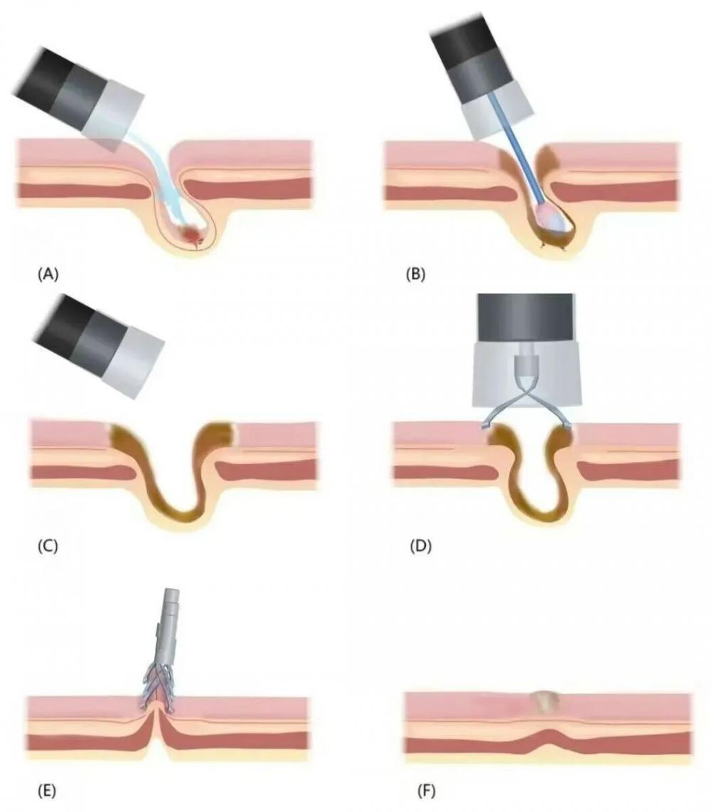 手术开始后,唐主任小心翼翼地操控着肠镜,一步步开展治疗:首先,用专业器械反复冲洗刘大爷的结肠,将憩室内的粪块、脓液和粪便残留逐一清理干净,确保憩室内没有残留的污染物,为后续治疗打下基础;随后,采用氩等离子体凝固术,对每个憩室的囊壁进行温和的电灼毁损,让憩室失去形成死腔的条件,不再容易藏污纳垢;最后,用钛夹像“扣纽扣”一样,将每个憩室的开口牢牢闭合,促进憩室黏膜愈合,让这些“小口袋”慢慢萎缩、消失。