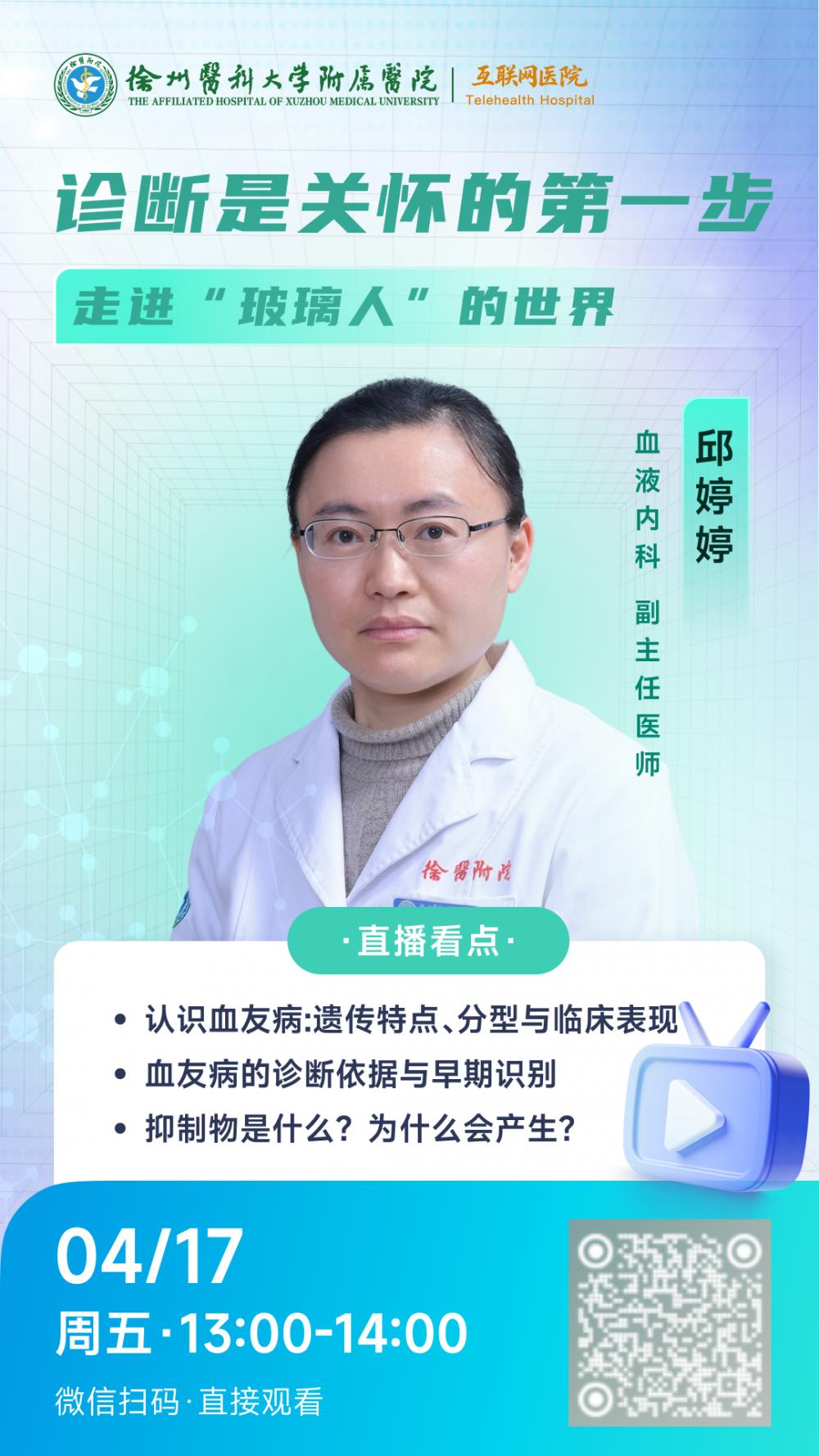 徐医附院世界血友病日特别直播预告:诊断是关怀的第一步——走进“玻璃人”的世界