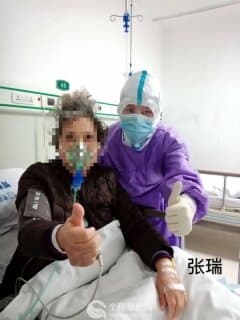 在一天天接触中,他们和患者的关系也慢慢变得更紧密、更融洽……一天凌晨,一位新冠肺炎合并肺癌晚期的高龄患者,突发憋喘加重合并咯血,病情危重、情绪激动。医疗队领队、医院重症医学科副主任王飞和护理组长马潇第一时间赶到患者床边,立即协助患者取半卧位,给予吸氧氧疗,翻身拍背排痰,监测生命体征等治疗措施。患者在他们的救治和安慰下,症状有所改善,情绪逐渐稳定。经王飞主任评估并征求市专家组意见和家属意见后,队长王飞、医疗组组长杨欢、护理组长马潇顶着大风、崎岖前行,冒着暴露风险,紧急将患者安全转运至ICU进一步抢救治疗。路途中,老人家情绪紧张,他们不停宽慰老人家。送至ICU的瞬间,老人家眼泛泪花,给他们竖起了大拇指。